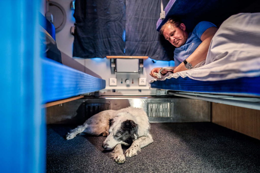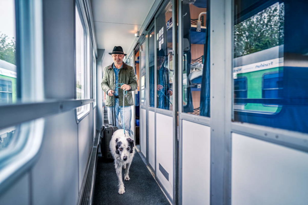 Hunde dürfen nach vorheriger Anmeldung mit im Abteil reisen.